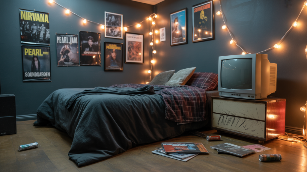 • Band posters (Nirvana, Pearl Jam, Soundgarden—you know the drill)