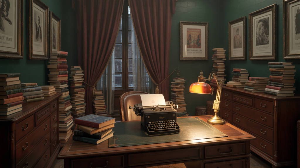 Deep colors rule here: burgundy, forest green, chocolate brown, and navy. Wood furniture should look antique or at least vintage. Books are essential—not just for reading, but as legitimate decor elements.