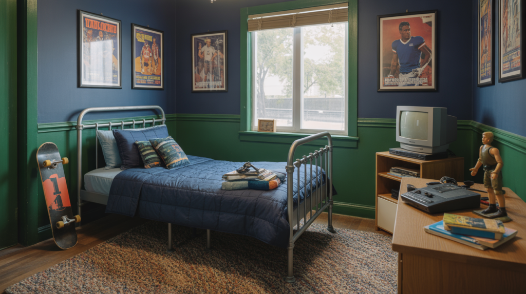 Let’s be real—90s boy bedrooms were a whole different vibe. While the girls got pastels and canopies, the boys got sports gear, video game posters, and approximately zero throw pillows. But there’s something beautifully straightforward about this aesthetic that’s worth recreating.