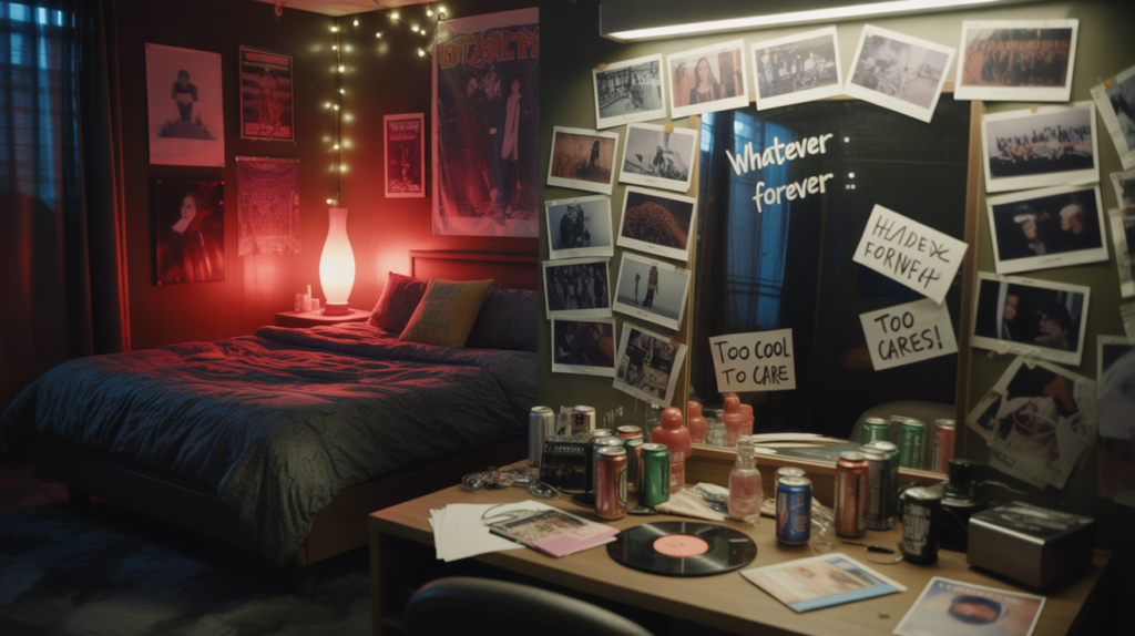 Picture this: flannel everything, band posters plastered across every available wall space, and fairy lights strung haphazardly because you thought they looked “moody.” The grunge aesthetic is for those of us who worshipped at the altar of Kurt Cobain and refused to smile in photos because angst was a personality trait.
