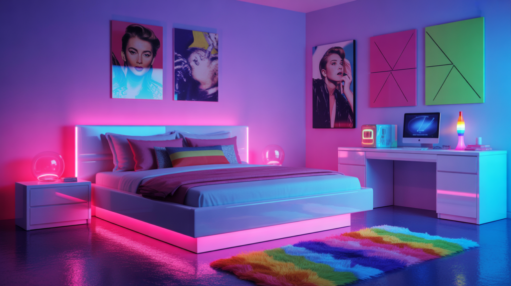 Your bedroom should look like a highlighter explosion—in the best way possible. Hot pink, electric blue, lime green, and sunshine yellow should be your new best friends. The 90s didn’t understand subtlety, and neither should you when recreating this vibe.