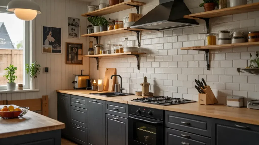 My neighbour pulled this off in her 1940s bungalow. The black shakers feel modern; the reclaimed oak shelves showcase her vintage dishware. “It’s like my kitchen has a story now,” she says. (Spoiler: The story involves three cats and a lot of ceramic chickens.)