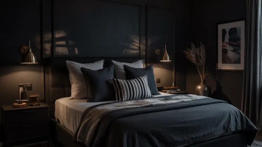 Texture saves this look from feeling flat. Different shades of dark (yes, they exist!) create depth. A matte black headboard against semi-gloss charcoal walls, paired with velvet bedding in midnight blue, creates layers that catch light differently throughout the day.