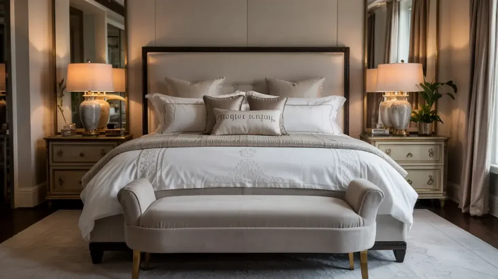 Symmetry is crucial for that hotel look. Matching nightstands on either side, matching lamps, matching everything. It creates a sense of balance and intentionality that feels polished and professional.