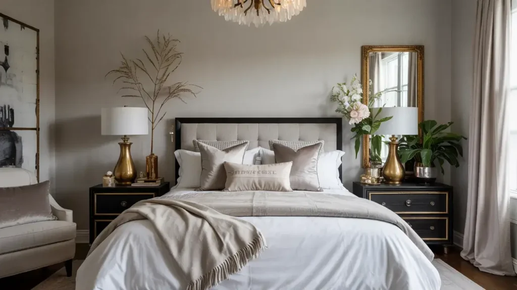 Don’t forget about the small details: gold drawer pulls, a gold tray on your dresser, even gold-rimmed picture frames. These little touches add up to create a cohesive, luxurious vibe that makes you feel like royalty every time you walk into your bedroom.