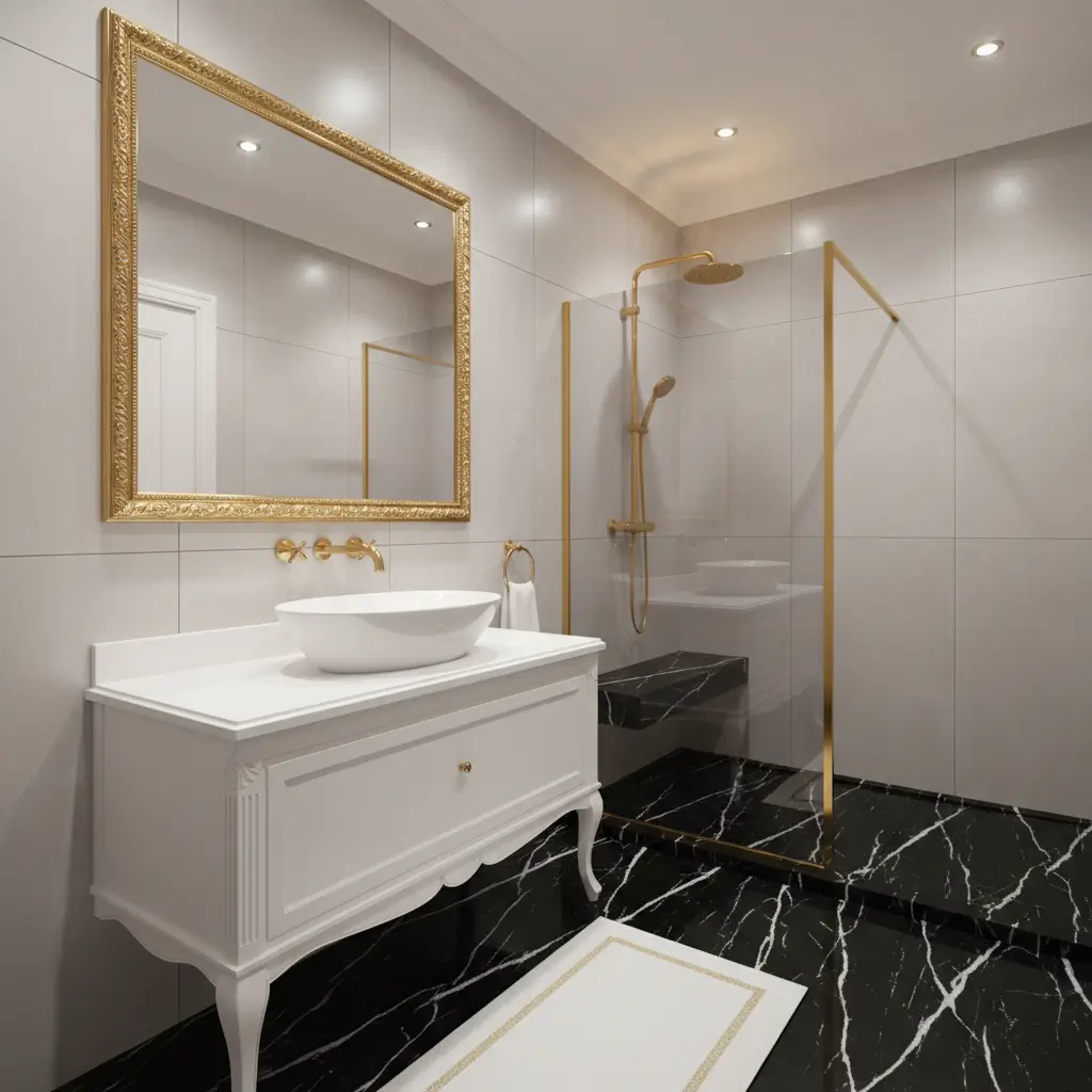- Balance the shine with matte elements elsewhere (walls, fixtures, accessories)