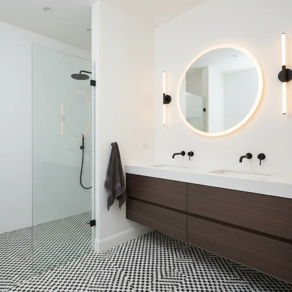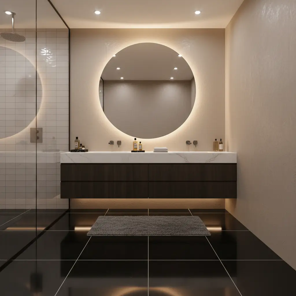 Quick note on flooring choice: glossy black floors can look stunning with freestanding tubs, but they show water spots and footprints like nobody’s business. If you’re willing to squeegee after every use, go for it. If you’re a normal human who has other things to do, stick with matte or honed finishes.