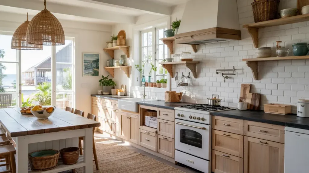 Every coastal kitchen on Instagram looks exactly the same. All white, all light wood, all blue accents. They all look like the exact same vacation rental that no one actually lives in.