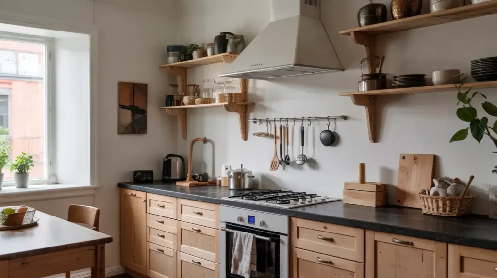 6. Scandinavian Kitchen with Light Wood and Black Granite
