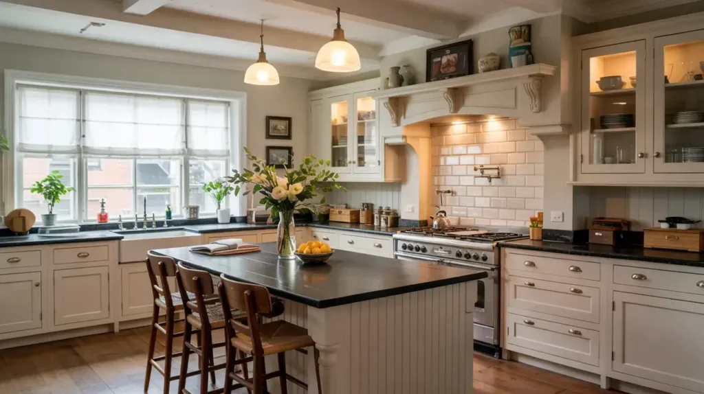 Black granite acts as this solid dark base that makes every single random thing you put on your shelves look intentional. Suddenly your collection of chipped mugs doesn’t look like clutter. It looks like a curated display.