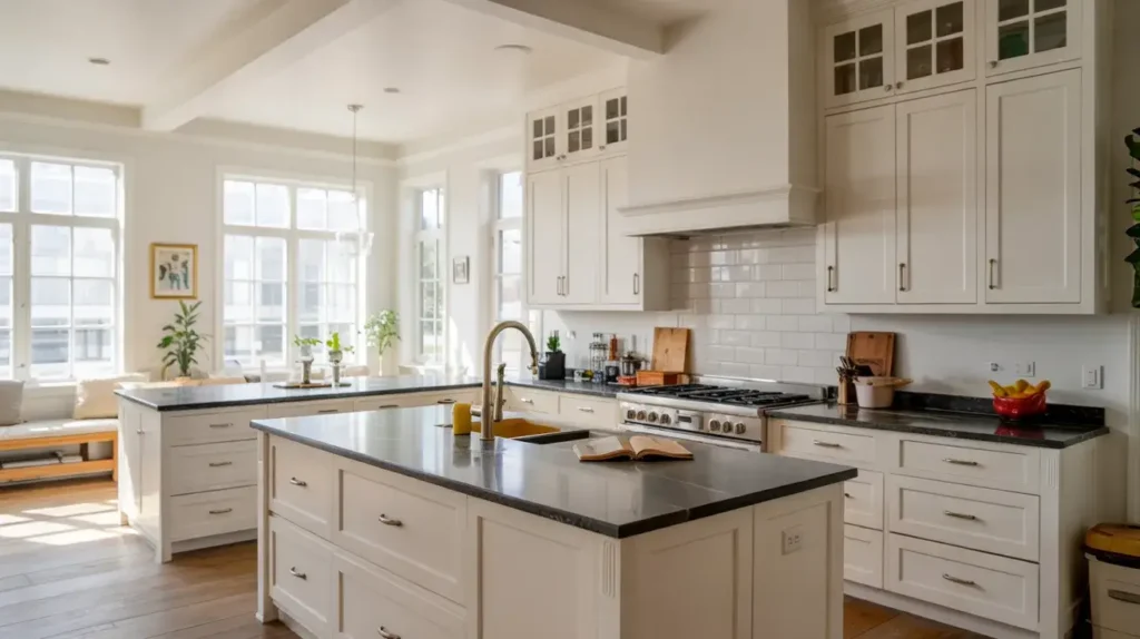 White shaker cabinets and black granite. This is not a trend. This is a permanent fixture of good design. My grandma had this combo installed in 1987. I stood in her kitchen last month. It looked more modern than 90% of kitchens built this year.