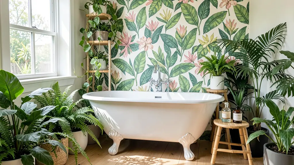 Your clawfoot tub becomes this centerpiece surrounded by greenery, like discovering a secret bathing spot in a tropical forest. Keep the base palette relatively neutral—whites, soft greens, natural wood tones—so the plants remain the stars of the show.