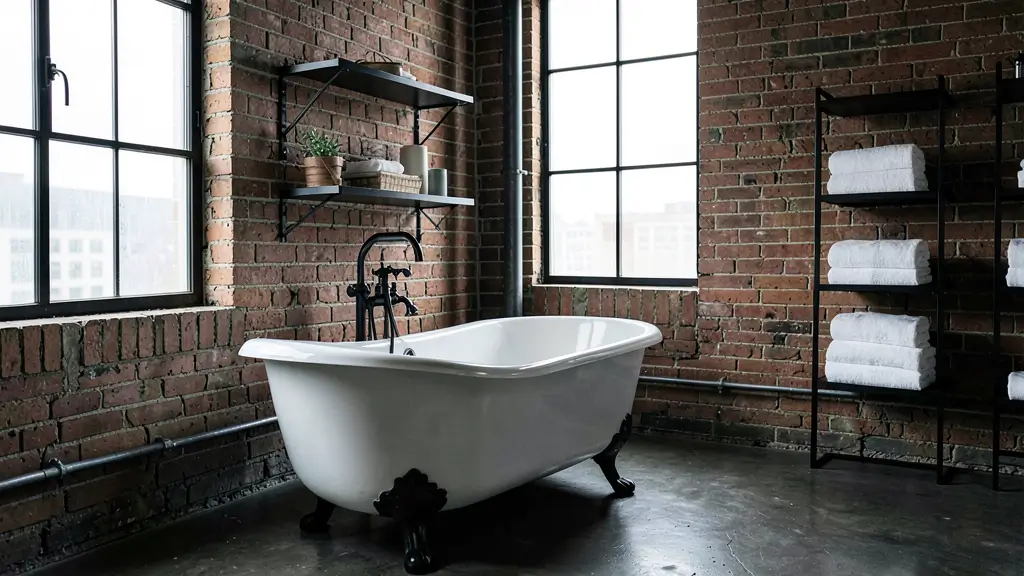 Balance is key though. Too much industrial and your bathroom feels cold and unwelcoming. The clawfoot tub helps soften things, but also consider adding some textiles, plants, or wooden accents to warm up the space. You want edgy and cool, not abandoned warehouse.
