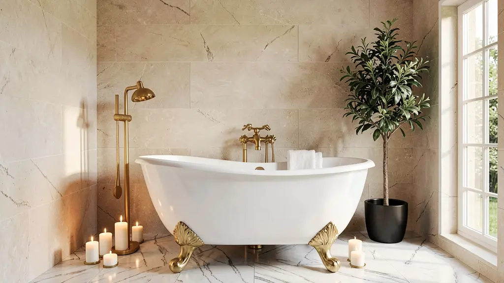 Balance the formality of marble with some warmer touches—maybe wooden accents, soft textiles, or brass fixtures. You want luxurious, not cold and uninviting. The clawfoot tub actually helps here, adding a softer, more traditional element that keeps the marble from feeling too austere.