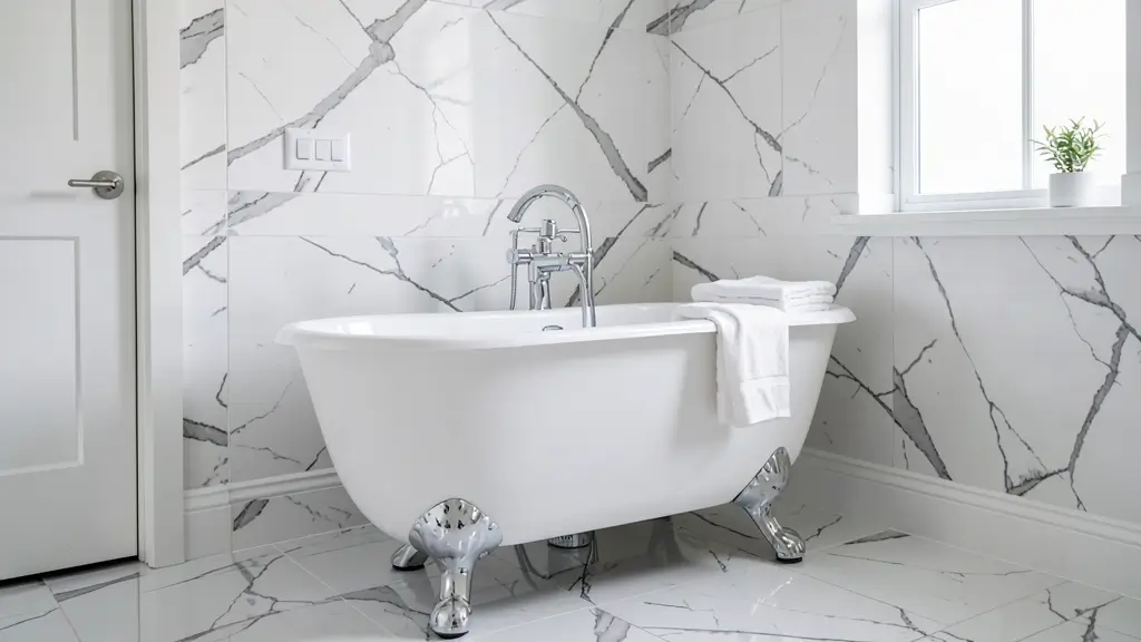 The pattern and placement of your marble tiles matter enormously. Herringbone patterns add movement and interest. Large-format tiles create a more modern, seamless look. Even a simple subway tile layout in marble feels elevated. Consider running marble halfway up the walls or going full-on floor-to-ceiling for maximum impact.