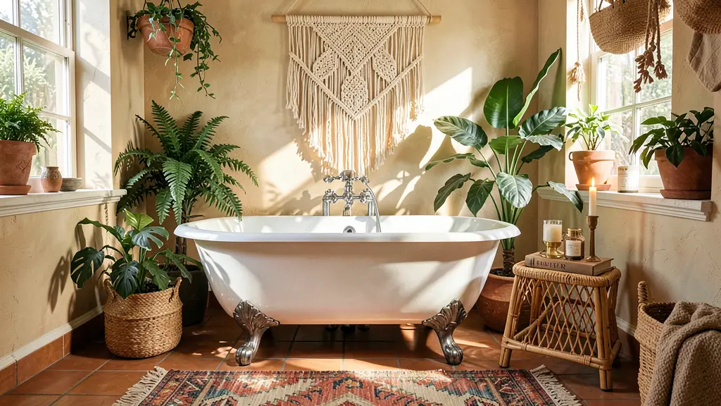If your design style can be described as “collected over time with love and zero concern for matching,” then the boho clawfoot bathroom is calling your name. This aesthetic celebrates eclecticism, global influences, and a wonderfully relaxed approach to decorating rules.