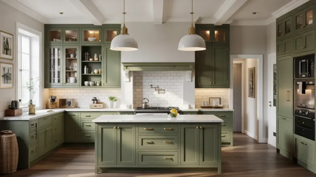 We have to start with the classic. The Shaker cabinet is the “little black dress” of the kitchen world—it never goes out of style. But when you swap the traditional white or grey for a deep, dark green, you transform that dress into a stunning evening gown.