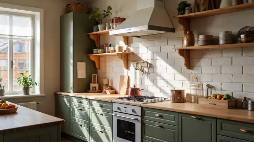 I recently saw a kitchen with olive green cabinets and a raw, live-edge wood shelf running the length of the wall. It was stunning. It felt less like a kitchen and more like a beautifully curated living room.