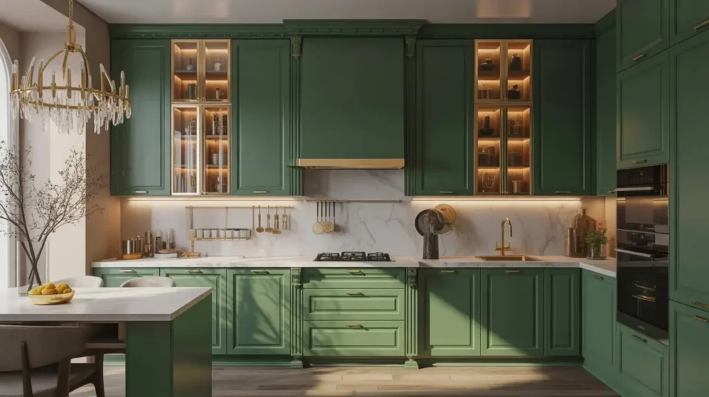 I know what you’re thinking. Green? In the kitchen? Trust me, once you see how this rich, jewel-toned hue transforms a boring cooking space into a high-end sanctuary, you’ll wonder why you waited so long. Emerald green commands attention. It feels expensive. It brings the drama without shouting too loud.