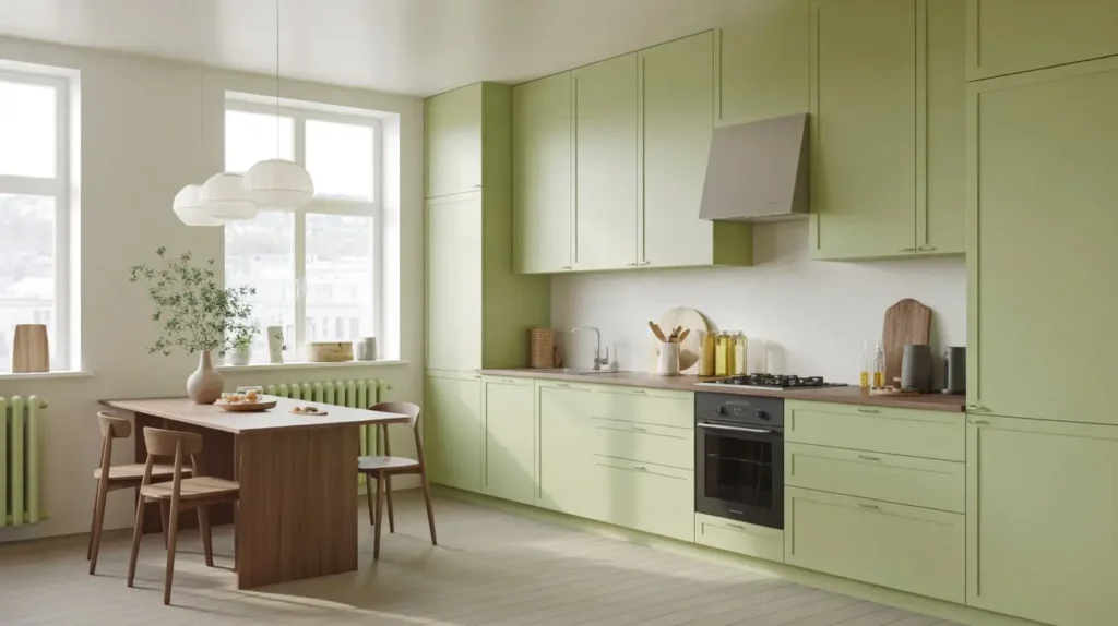 14. Minimalist Green and Brown Scandinavian Kitchen