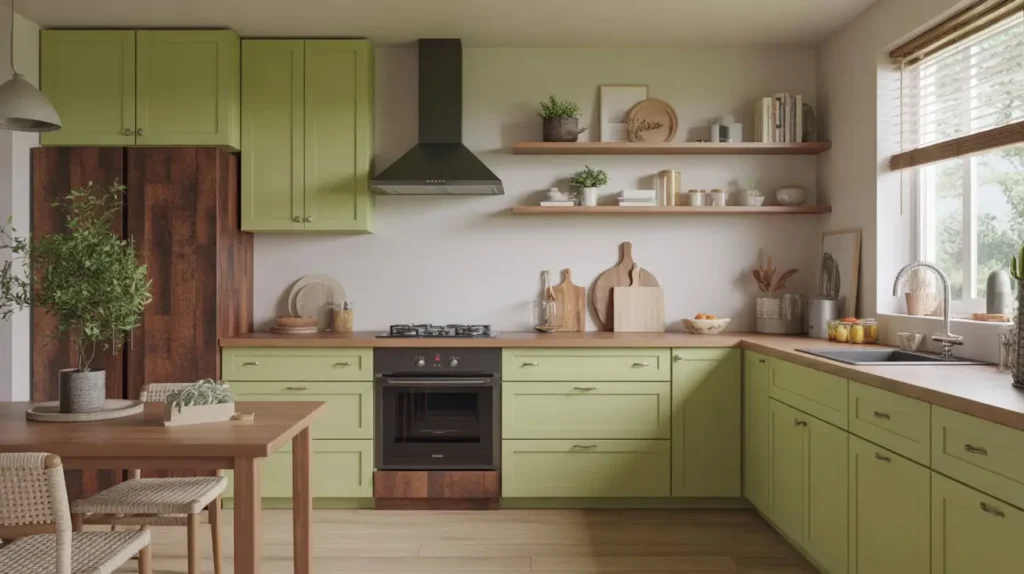 If sage is the safe choice, olive is the cool, worldly older sister. Olive green packs a punch. It’s earthy, a little savory (pun intended), and looks incredible with raw, natural wood. This style leans heavily into the “wabi-sabi” aesthetic—finding beauty in imperfection.
