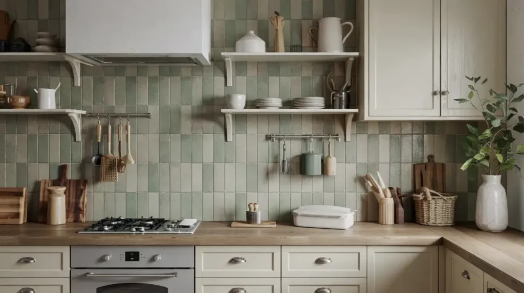Let’s start with the gateway drug of green tiles: Sage Green. If you are nervous about committing to color because you’re afraid you’ll hate it in six months, this is your best friend. Sage green subway tiles offer that classic, timeless shape we all know and love, but with a soft, earthy twist that feels incredibly organic. I love this option because it feels historic and modern at the same time—it’s like the cool aunt of kitchen design.