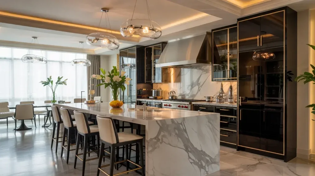 11. Black and White Marble Luxe Kitchen