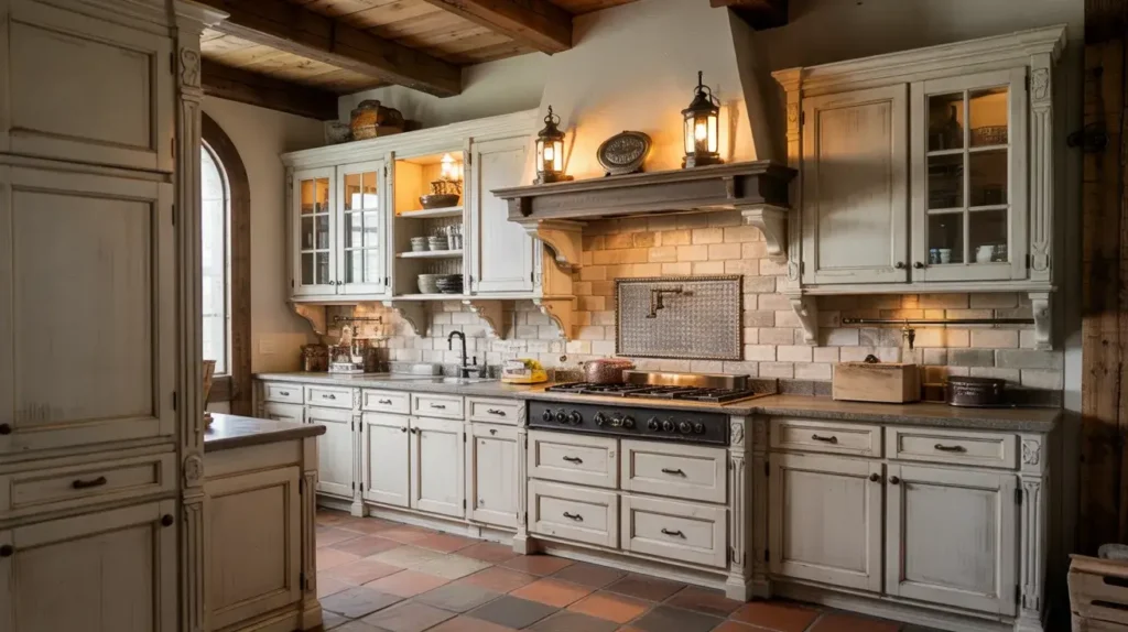 This style is all about that perfectly imperfect aesthetic. Your cabinets look like they’ve been lovingly used for decades, developing character in all the right places.