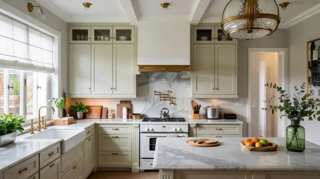 I am completely obsessed with this color, and frankly, I think it’s the best thing to happen to kitchen design in the last twenty years. Sage green is the ultimate chameleon. It acts like a neutral, meaning it pairs with almost anything, but it brings a life and energy to the room that grey and beige just can’t compete with. It’s calming, organic, and effortlessly sophisticated.