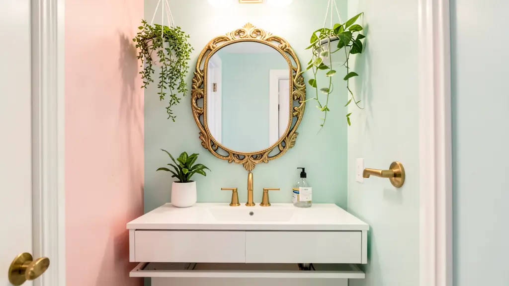 Pastel colors are the sweet spot between bold statements and neutral safety. Soft blues, gentle greens, blush pinks, or pale yellows add character without overwhelming a small space. They still maintain that light, airy feeling while giving your bathroom some actual personality.