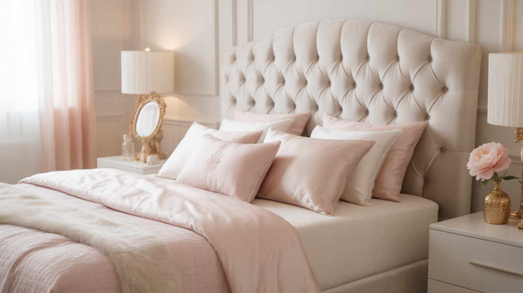 2. Soft Blush and Cream Royal Bedroom Theme