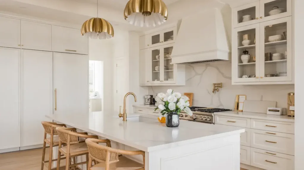 Ready to add some serious glam to your kitchen? White countertops with gold hardware transform an ordinary kitchen into something that feels luxurious and high-end. This is one of my favorite ways to elevate a simple design without going overboard.