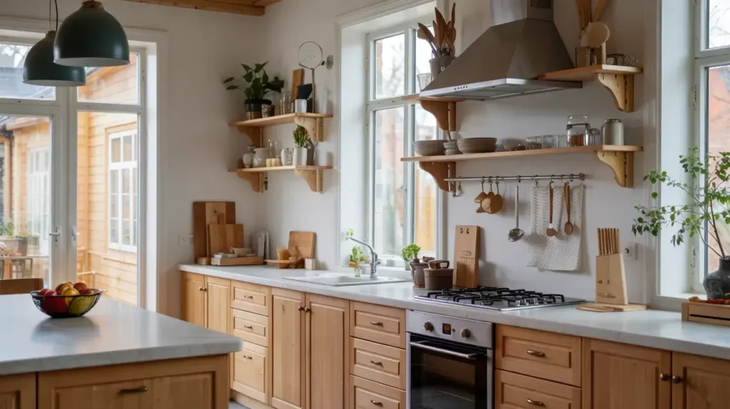 Scandinavian design is all about creating calm, functional spaces with natural materials and a neutral color palette. White countertops provide that clean, bright surface, while light oak brings warmth and that essential connection to nature. The result? A kitchen that feels serene, uncluttered, and absolutely gorgeous.