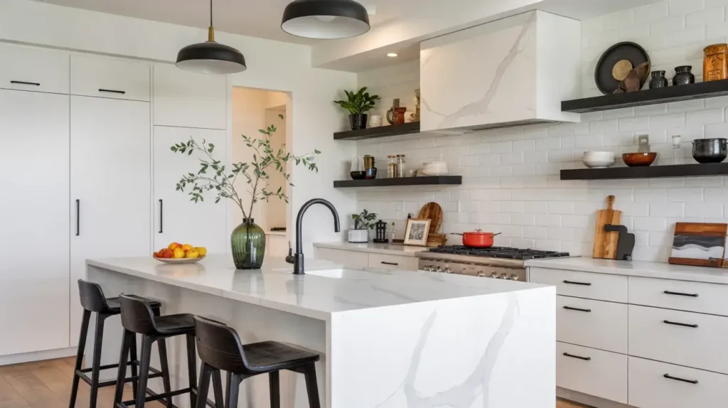 What makes this style work is the play on different white tones and textures. You’re not just slapping one coat of white paint everywhere and calling it a day. Mix matte white cabinets with glossy white backsplash tiles. Add in some white quartz countertops with subtle veining. The monochromatic palette creates depth without introducing actual color.