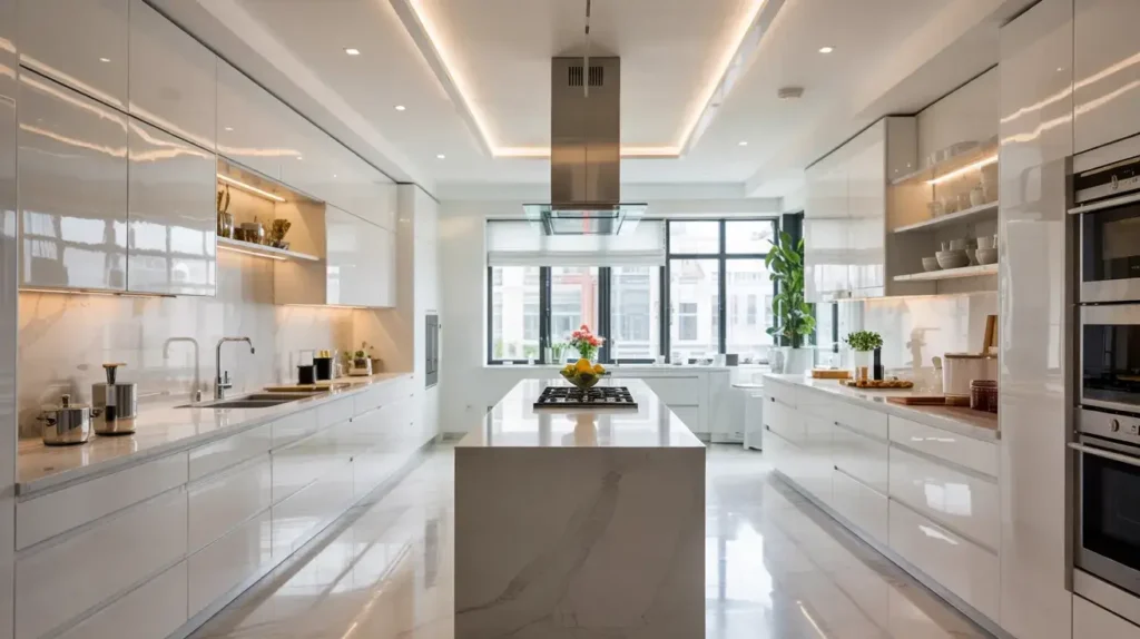 13. High-Gloss Contemporary White Kitchen