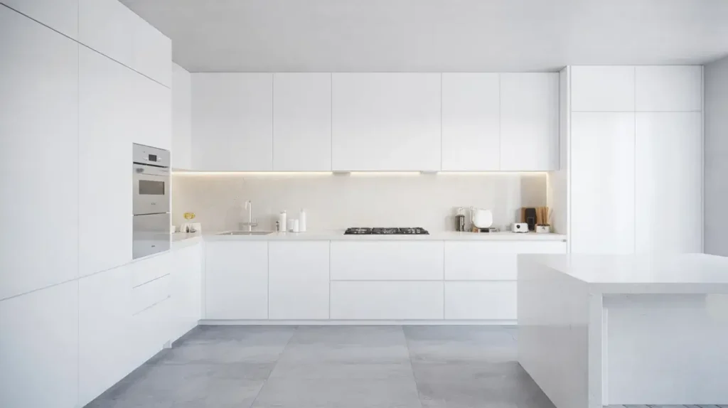 4. Minimalist White Shaker Kitchen with Sleek Lines