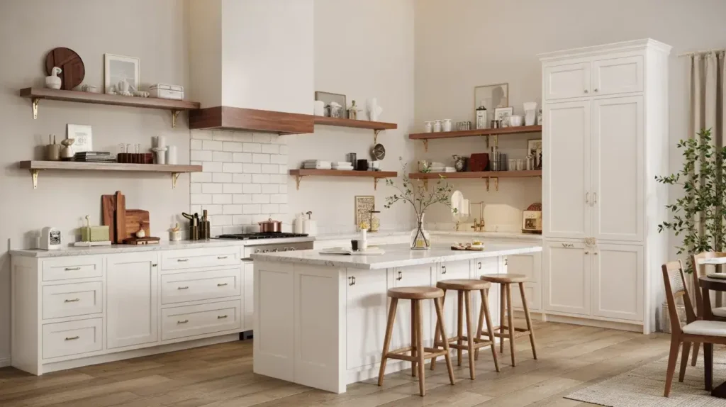 Here’s my honest take: open shelving works best as an accent, not a replacement for all your upper cabinets. A few well-placed floating shelves provide visual relief and display opportunities without sacrificing all your hidden storage.
